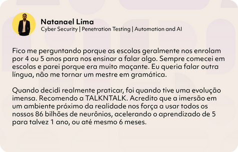 E o melhor: devolvemos 100% do investimento se você não alcançar a fluência
